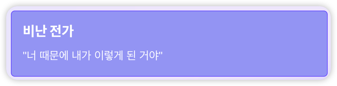 - 비난을 전가: “너 때문에 내가 이렇게 된 거야”