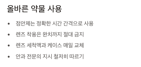 - 항생제 점안제 사용 시 빠르면 3~5일 내 호전