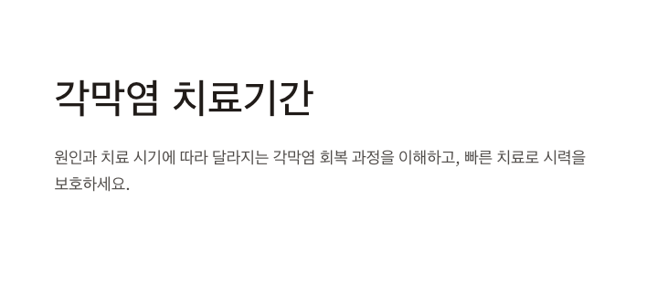 | 각막염 종류 | 치료기간 | 치료 방법 | 예후 |