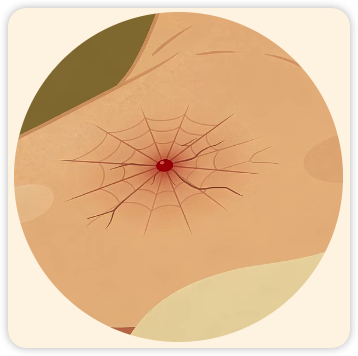 2-4. 피부 변화: 거미상 혈관종, 수장 홍반