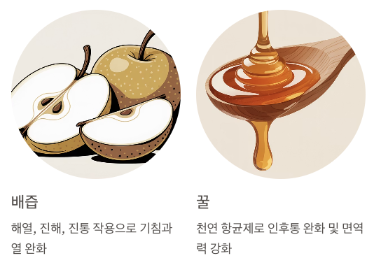 - 꿀은 천연 항균제로, 인후통 완화와 면역력 강화에 매우 효과적입니다.