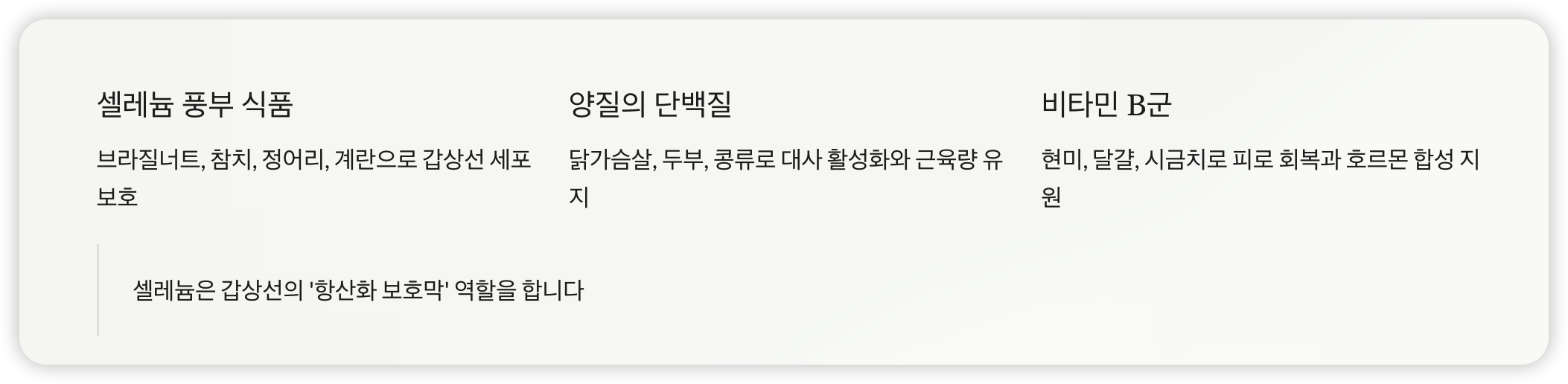 💡 셀레늄은 갑상선의 ‘항산화 보호막’ 역할을 하며,