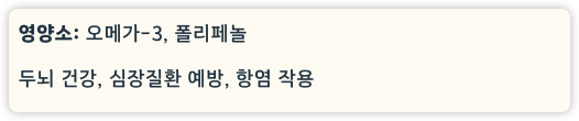 - 영양소: 오메가-3 지방산, 폴리페놀