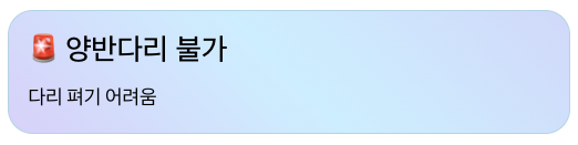 - 양반다리 자세가 되지 않고 다리를 펴기 어려운 경우