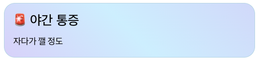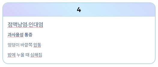 - 밤에 누워 있을 때 심해지는 통증이 특징