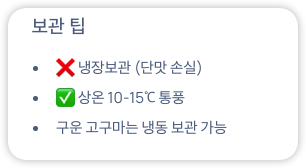 - 냉장보관 ❌ (전분이 당으로 변해 단맛 손실)