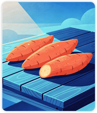 고구마에는 비타민B1(티아민)이 풍부하여 뇌의 에너지 대사에 관여합니다.