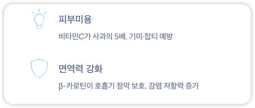 특히 β-카로틴은 체내에서 비타민A로 전환되어 호흡기 점막을 강화하고 감염 저항력을 높여줍니다.