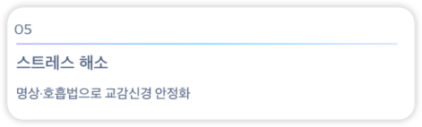 | 스트레스 해소 | 명상·호흡법으로 교감신경 안정화 |