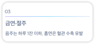 | 금연·절주 | 음주는 하루 1잔 이하, 흡연은 혈관 수축 유발 |