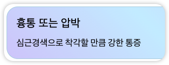 | 흉통 또는 가슴 압박 | 심근경색으로 착각할 만큼 강한 가슴 통증 |