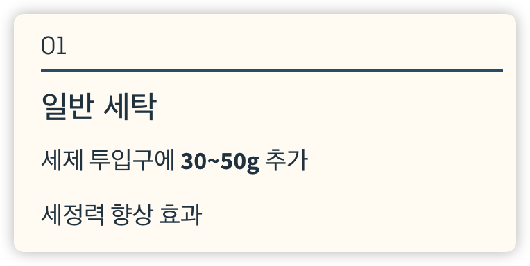 - 일반 세탁 시: 세제 투입구에 30~50g 추가