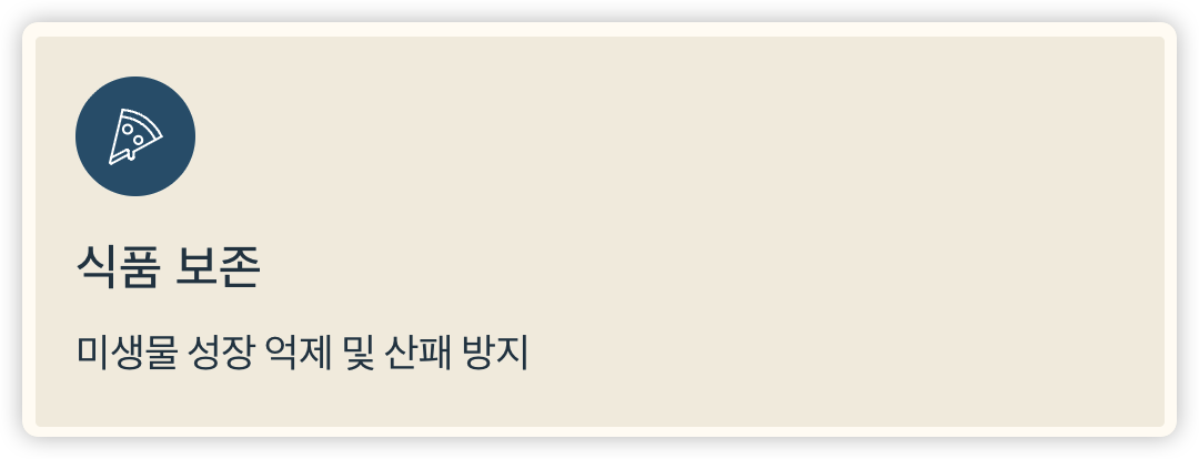 - 미생물의 성장 억제, 산패 방지, 신맛 부여