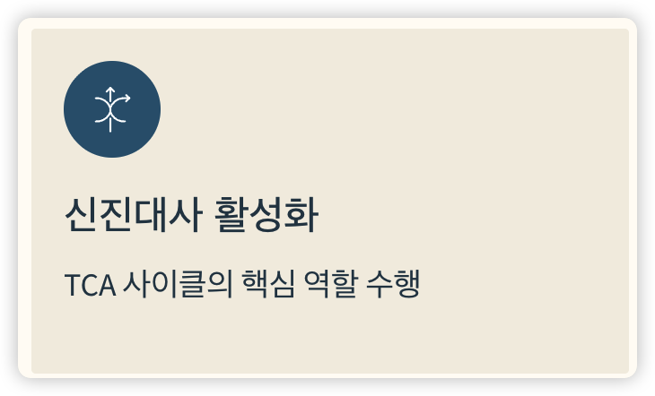 - 세포 호흡에 관여하는 시트르산 회로(TCA 사이클)에 핵심 역할