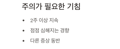| 2주 이상 지속 | 병원 방문 |