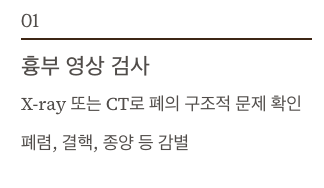 - 흉부 X-ray 또는 CT 촬영으로 폐의 이상 유무 확인