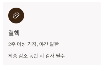 - 결핵: 2주 이상 기침, 야간 발한, 체중 감소가 있다면 의심 필요