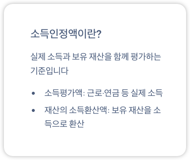 - 소득평가액: 근로소득, 연금소득 등 실제 소득
