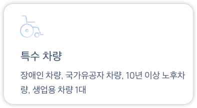 - 장애인 차량, 국가유공자 차량, 10년 이상 노후차량