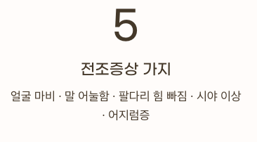 다음 5가지 증상은 뇌졸중 발생 직전 또는 수시간 전부터 나타나는 경고 신호입니다.