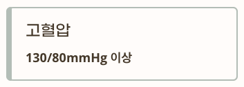 | 고혈압 병력 | 130/80mmHg 이상 |