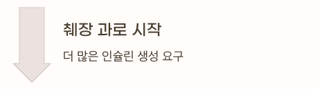 - 인슐린 대량 분비 → 세포 저항성 증가