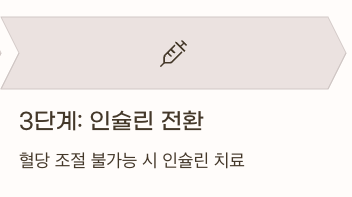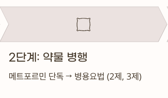 - 메트포르민 단독 → 병용요법(2제, 3제) → 인슐린 전환