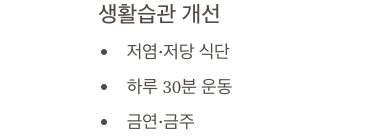 - 균형 잡힌 식사, 저염·저당 식단 유지