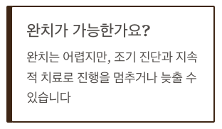 → 완치는 어렵지만, 조기 진단과 지속적인 치료로 진행을 멈추거나 늦출 수 있습니다.