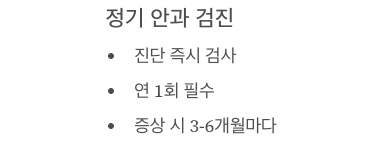 - 최소 1년에 1회, 증상이 있는 경우 3~6개월마다 검진