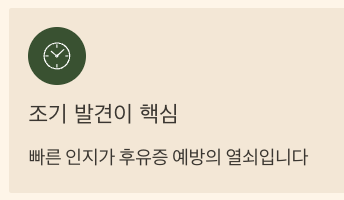 - 초기 증상 72시간 이내에 병원에 방문하는 것이 가장 중요합니다.