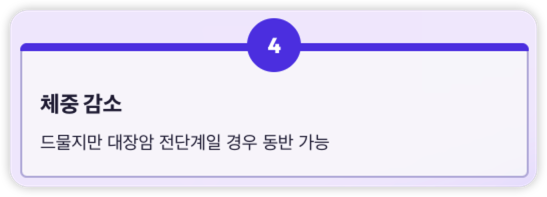| 체중 감소 | 드물지만 대장암 전단계일 경우 체중 변화 동반 가능 |
