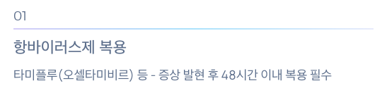 TIP: 항바이러스제는 증상 발현 후 48시간 이내 복용 시 효과가 크므로 빠른 대처가 중요합니다.