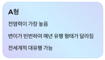 독감은 A형, B형, C형 인플루엔자 바이러스로 나뉘며, A형은 전염력이 높고 변이가 잦아 매년 유행 형태가 달라집니다. B형은 지역적으로 유행하며, C형은 주로 경미한 증상을 보입니다.