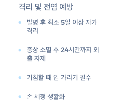 - 발병 후 최소 5일 이상 자가격리