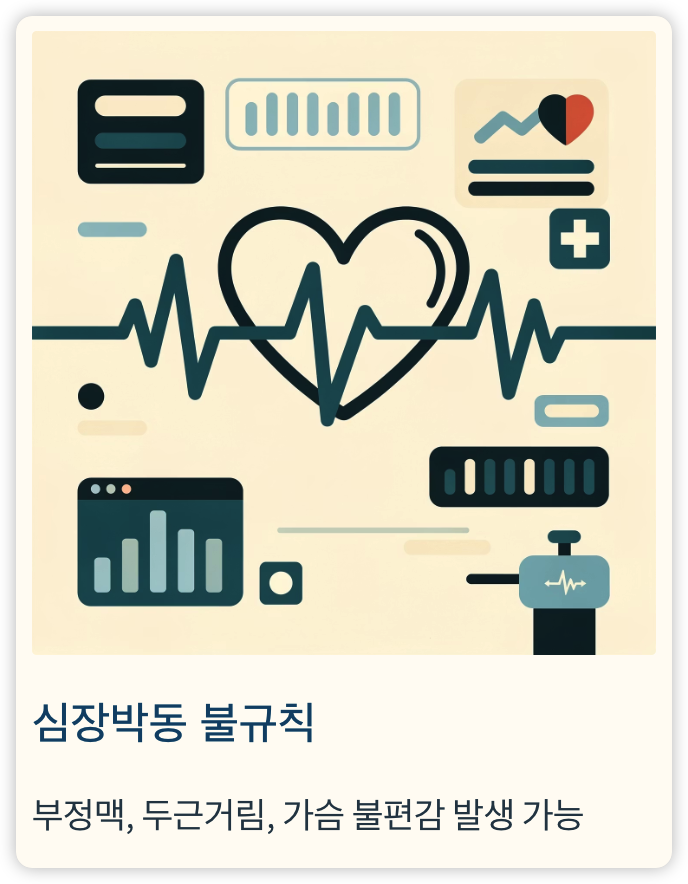 - 결핍 시 부정맥, 두근거림, 가슴 불편감 발생