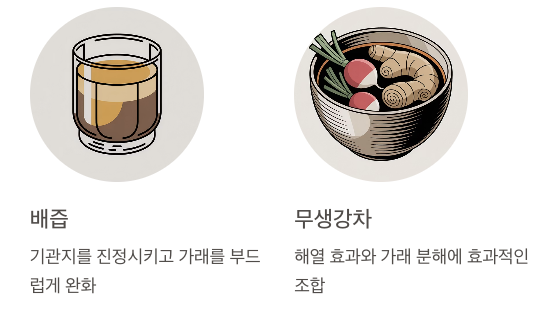 - 생강꿀차: 생강 슬라이스 + 꿀 → 뜨거운 물에 우려내기