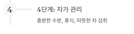- 추천 차: 생강차, 꿀유자차, 배즙, 도라지차