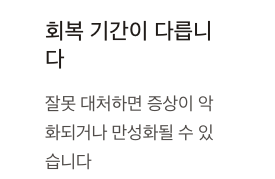 - 회복: 경우에 따라 항생제 치료 필요, 만성화되면 수술 고려