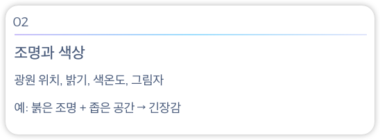 - 관객의 시선과 감정 흐름을 유도하는 수단