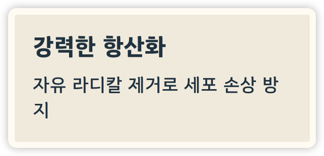 - 자유 라디칼 제거 → 세포 손상 억제