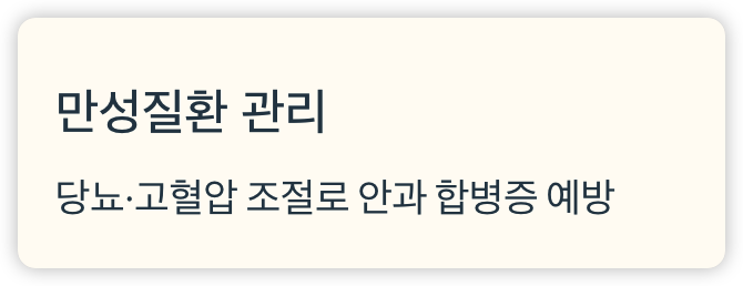 - 혈당·혈압 관리를 통해 안과 합병증 예방 가능