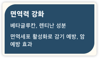 - 베타글루칸, 렌티난 등 면역세포 활성화