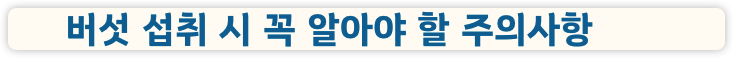 - 약용버섯: 건강 기능성이 뛰어나지만 일상 식품으로는 제한적