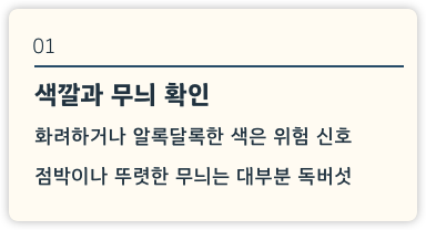 - 점박이나 무늬가 뚜렷한 경우 대부분 독버섯