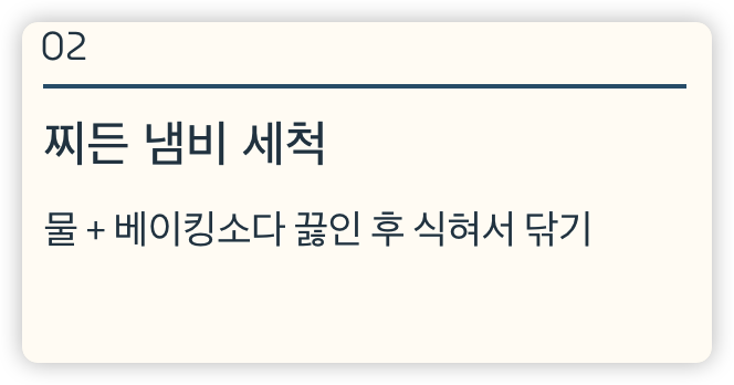 - 냄비 찌든 때: 물 + 베이킹소다 끓인 후 식힌 다음 세척