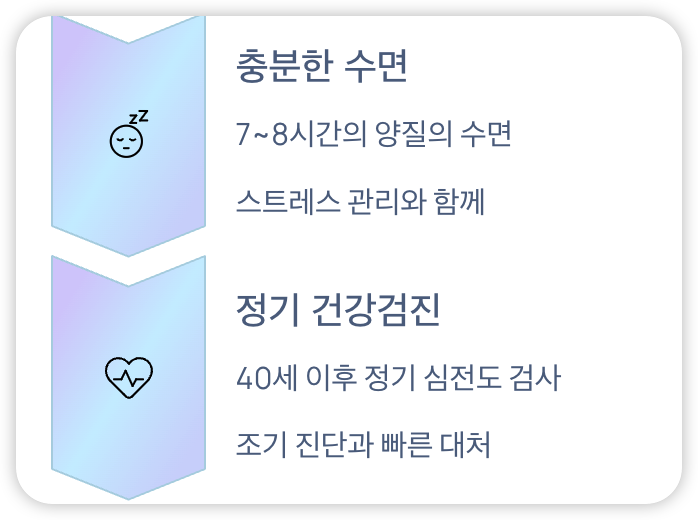 - 7~8시간의 충분한 수면과 스트레스 관리도 부정맥 예방에 중요