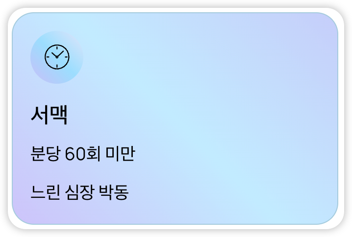 - 서맥(느린 심장 박동, 분당 60회 미만)