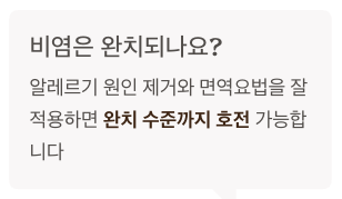 → 알레르기 원인을 제거하거나 면역요법을 잘 적용하면 완치 수준까지 호전 가능합니다.