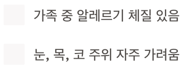 | 계절이나 환경 변화 시 증상이 심해짐 | |